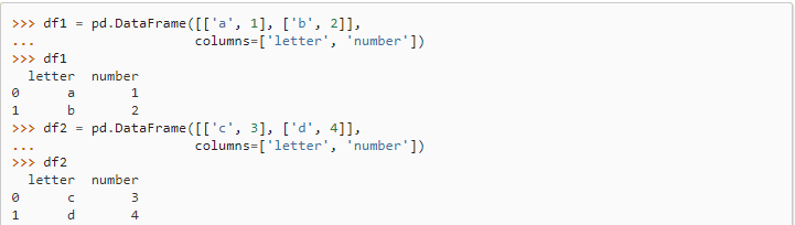 이어 붙일 데이터 프레임을 [df1, df2]의 형태로 입력한다.
